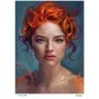 Görselde, portre tarzında resmedilmiş genç bir kadın figürü bulunmaktadır. Kadının saçları kıvırcık ve kızıl renktedir, arka plan sade bir şekilde mavi tonlarda tasvir edilmiştir. Stil olarak dekoratif ve modern bir yaklaşıma sahiptir. Sanatsal fırça darbeleri, esere dinamik bir hava katmaktadır.